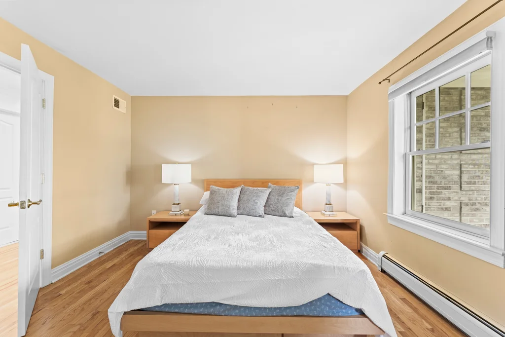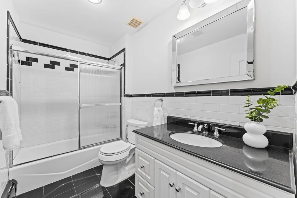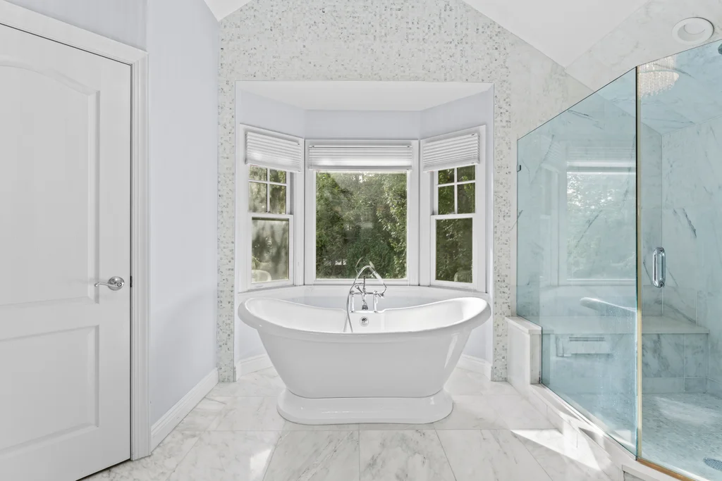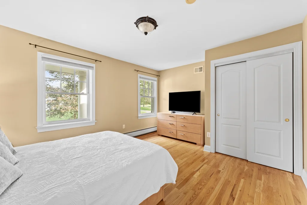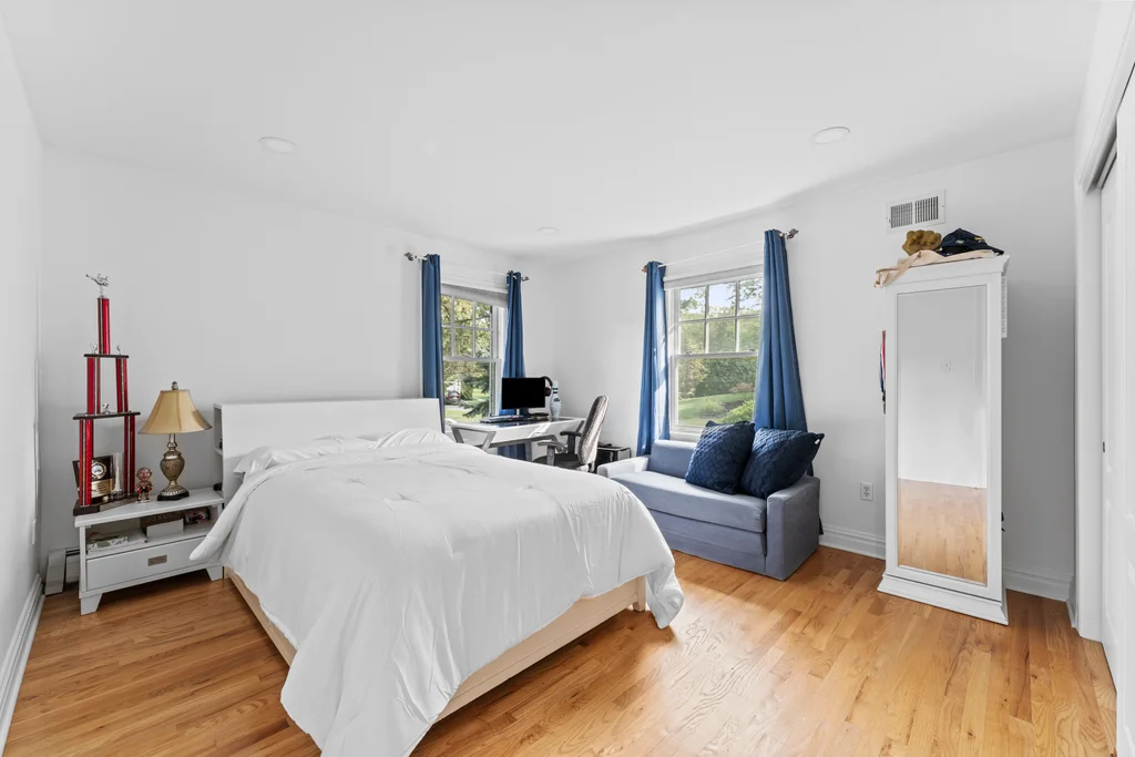 The primary suite offers a private sanctuary on its own level, complete with two Juliette balconies, a custom walk-in closet, and a spa-inspired bath that epitomizes luxury and relaxation.