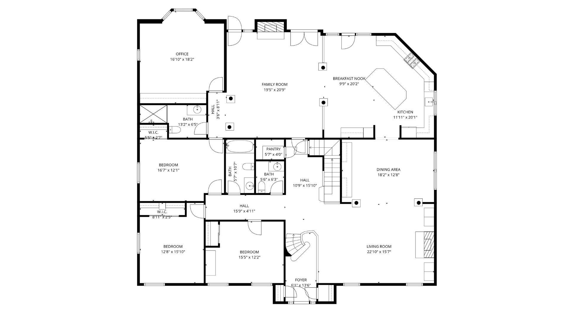 Three generously sized bedrooms, a private office, two full baths, and a refined powder room complete the main level—each space intentionally designed to blend elegance with ease.